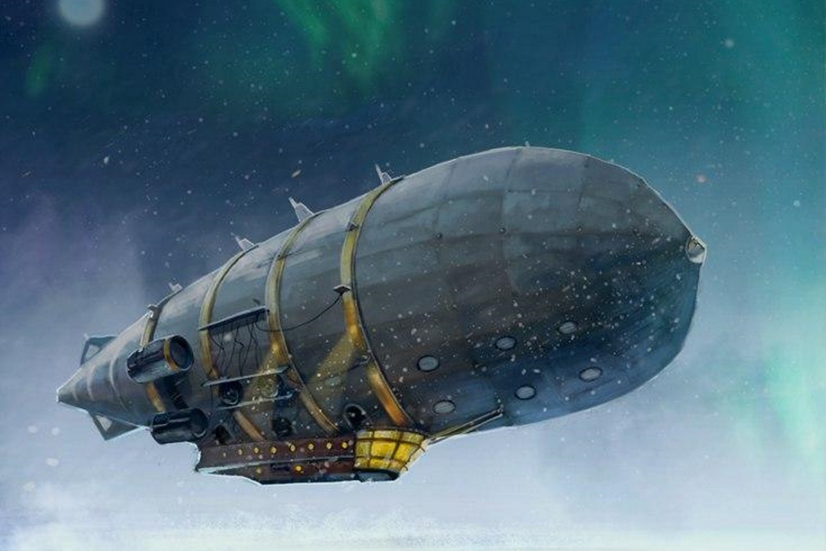 Дирижабль приближается к Северному полюсу.